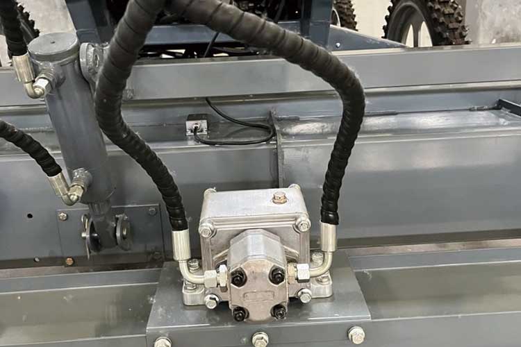 8、獨立四輪移動,方便靈活。通過液壓驅動車輪行走系統,使得輪子可以獨立運動,與整平頭互不影響,使用電控操作輪子的前進、后退、轉向及行進速度,移動非常方便。