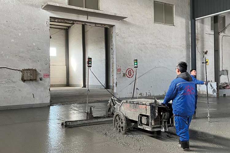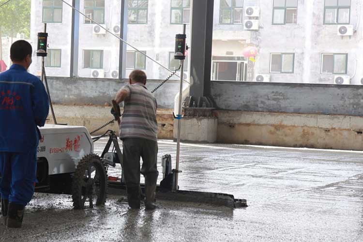 12、激光測控系統自動控制標高:地坪頂面設計標高由激光機電腦自動控制,可保證非常高的地面平整度,并可直接在混凝土層上實現精準找平,地面平整度不受施工模板震動影響,中間不用支模,減少人工材料投入,減少施工程序,加快施工進度。